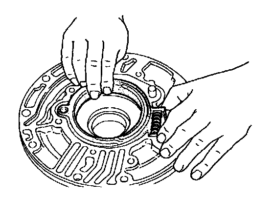 5. Remove cam ring and cam ring spring from oil pump housing.
