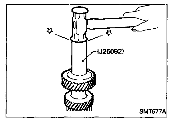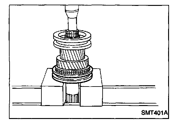 c. Press on 3rd & 4th synchronizer assembly together with 3rd main gear and 3rd gear needle bearing.