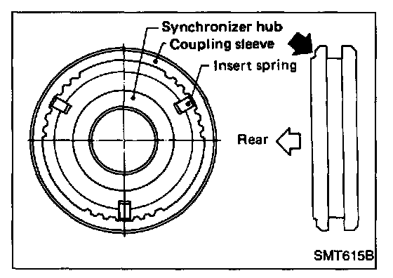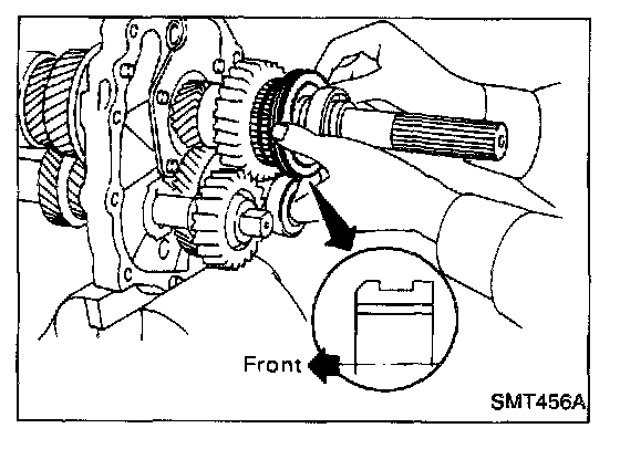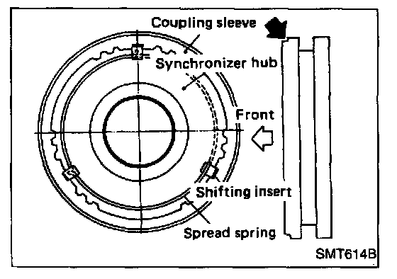 Note: Pay attention to direction of synchronizer assembly.