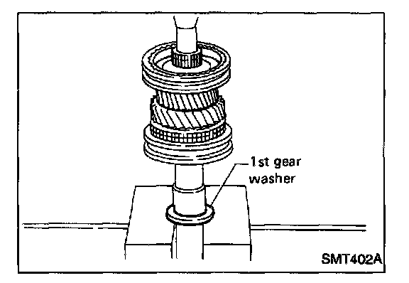 g. Press on 1st gear bushing using 1st gear washer.