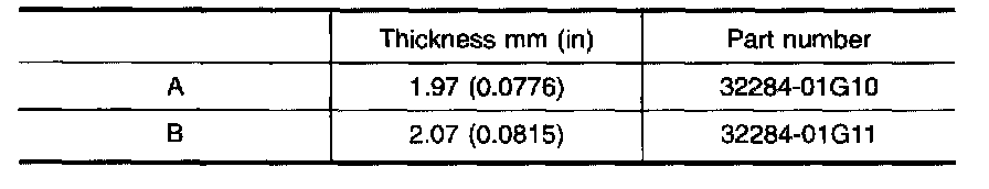 Table for selecting proper counter gear front bearing shim: [1][2]Mechanical Specifications