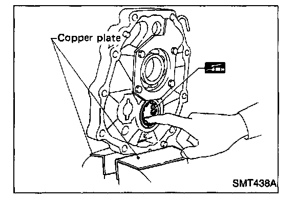 6. Select proper reverse idler rear thrust washer when replacing rear extension, reverse idler gear, reverse idler shaft or reverse idler thrust washer.