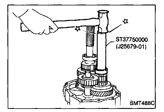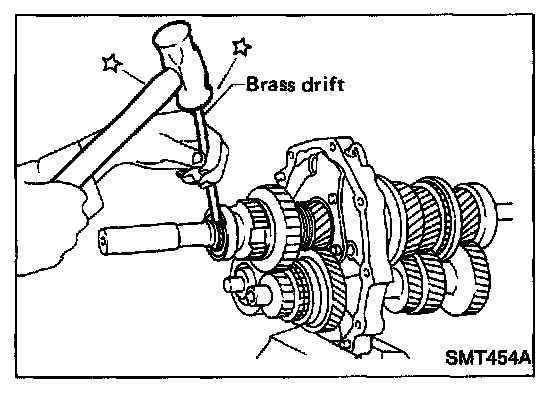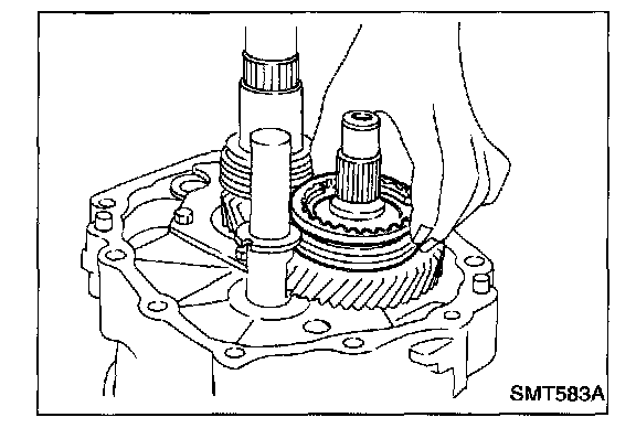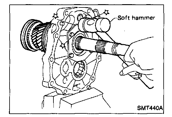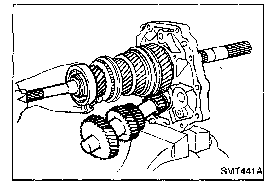 b. Install mainshaft a little on mainshaft front bearing.