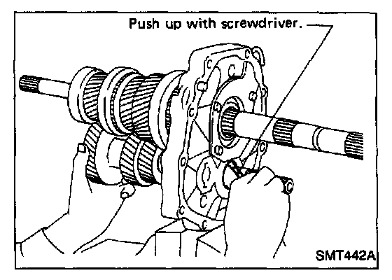 Note: When installing counter gear into counter gear rear bearing, push up on upper roller of counter gear rear bearing with screwdriver.