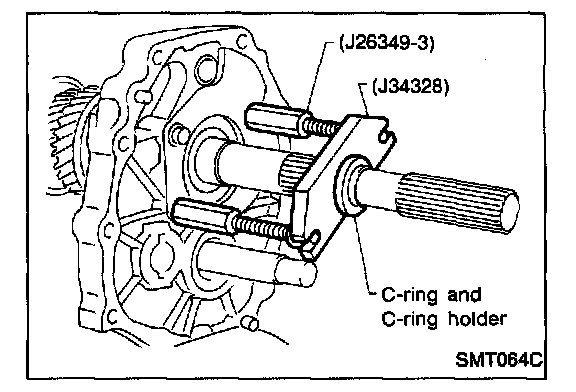 d. Install tools (J26349-3) onto adapter plate and C-ring and C-ring holder on mainshaft.