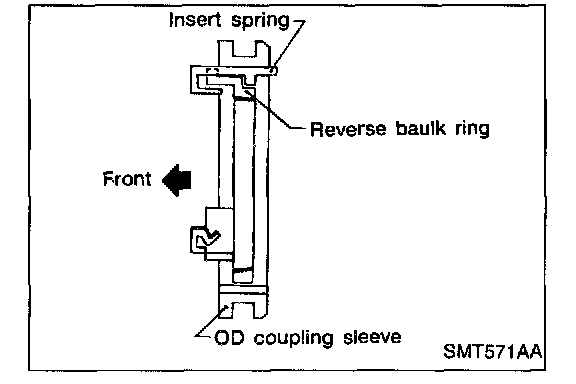 g. Install insert springs and reverse baulk ring on OD coupling sleeve. Then install them and OD baulk ring on OD counter gear.