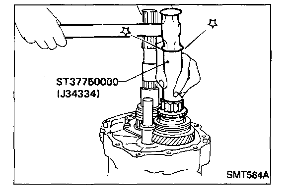 e. Install tool (J34328) on mainshaft.