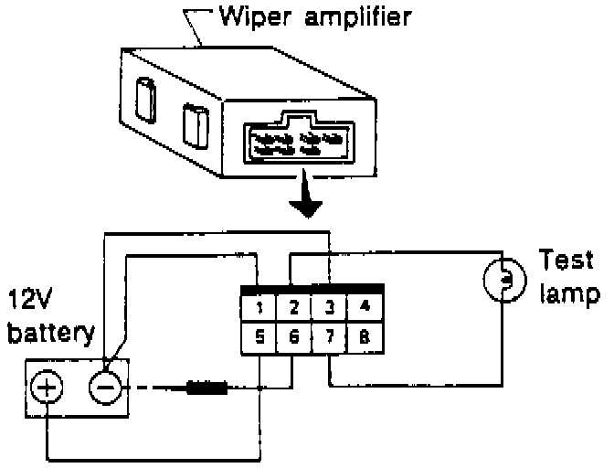 If test lamp comes on when connected to terminal (6) and battery ground, wiper amplifier is normal.