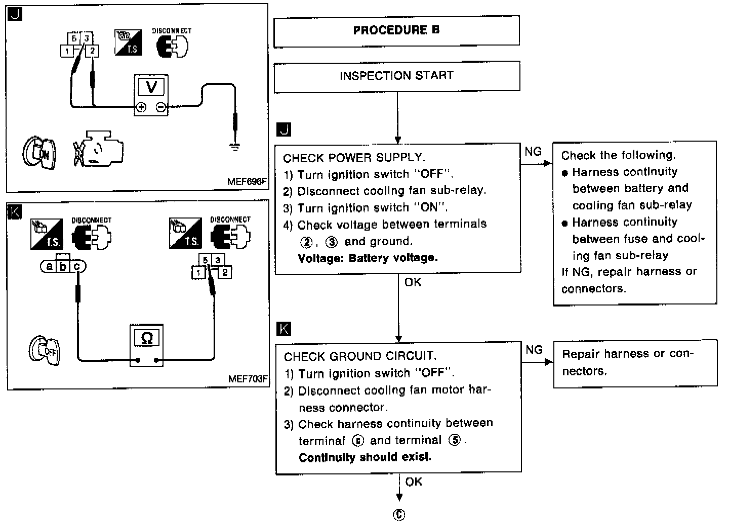 Cooling Fan Control Circuit Diagnostic Chart - PROCEDURE B: