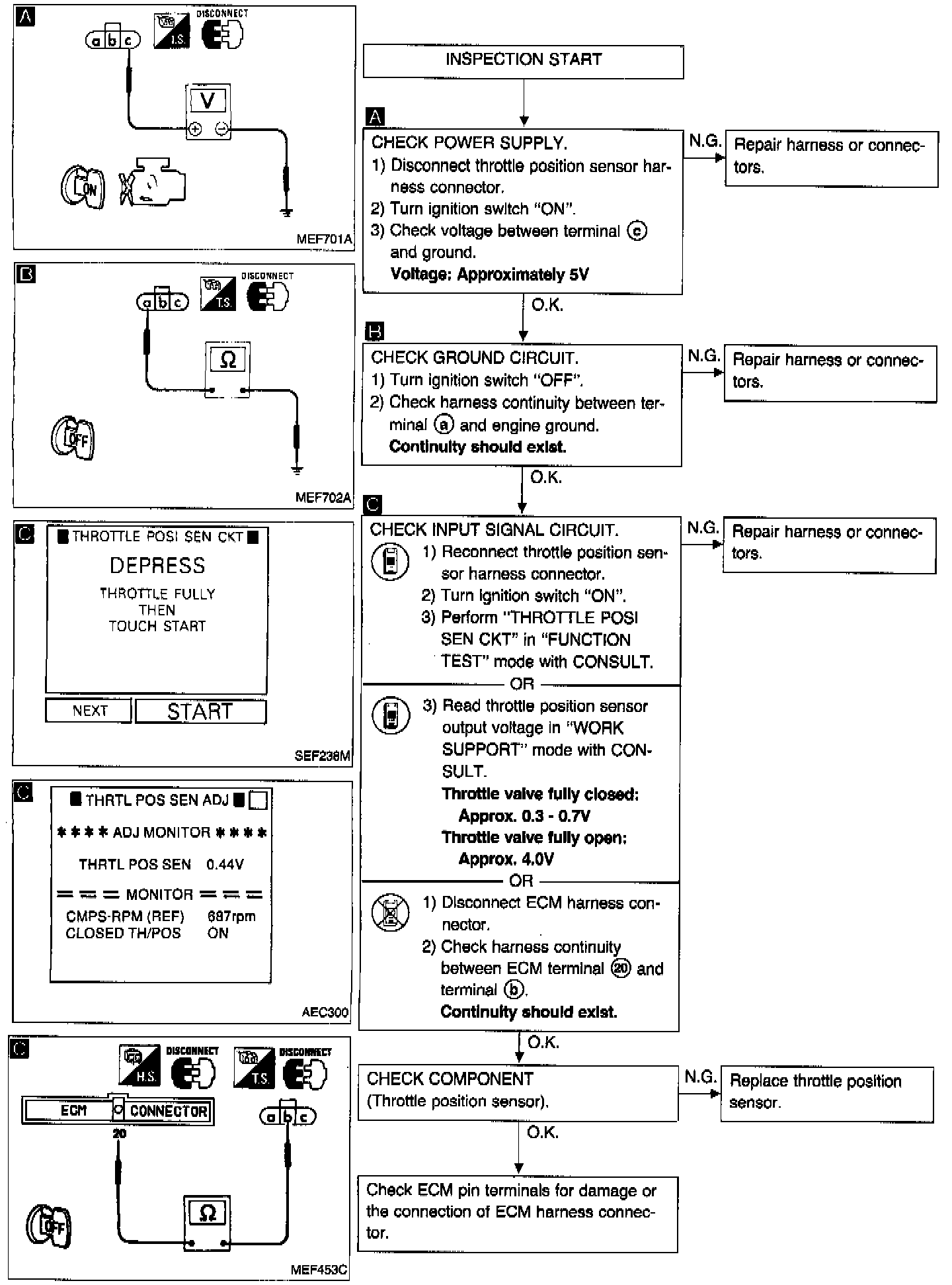 DTC 43 Throttle Sensor Diagnostic Chart: