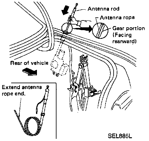 2. Insert gear section of antenna rope into place with it facing toward antenna motor.
