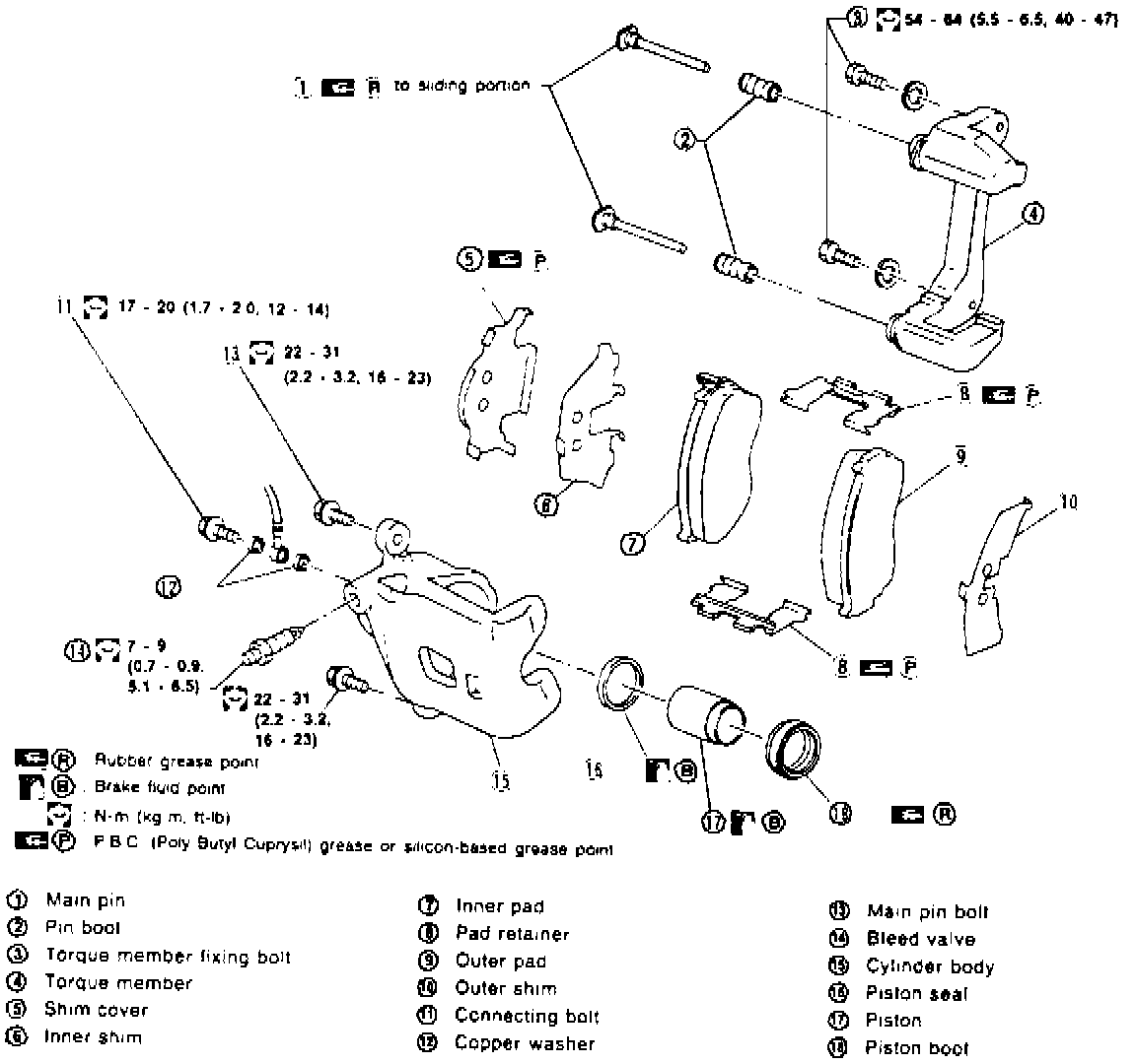 Fig. 6 Exploded View Of CL18VD, CL18VE, CL22VD & CL22VE Front Disc Brake Assembly: