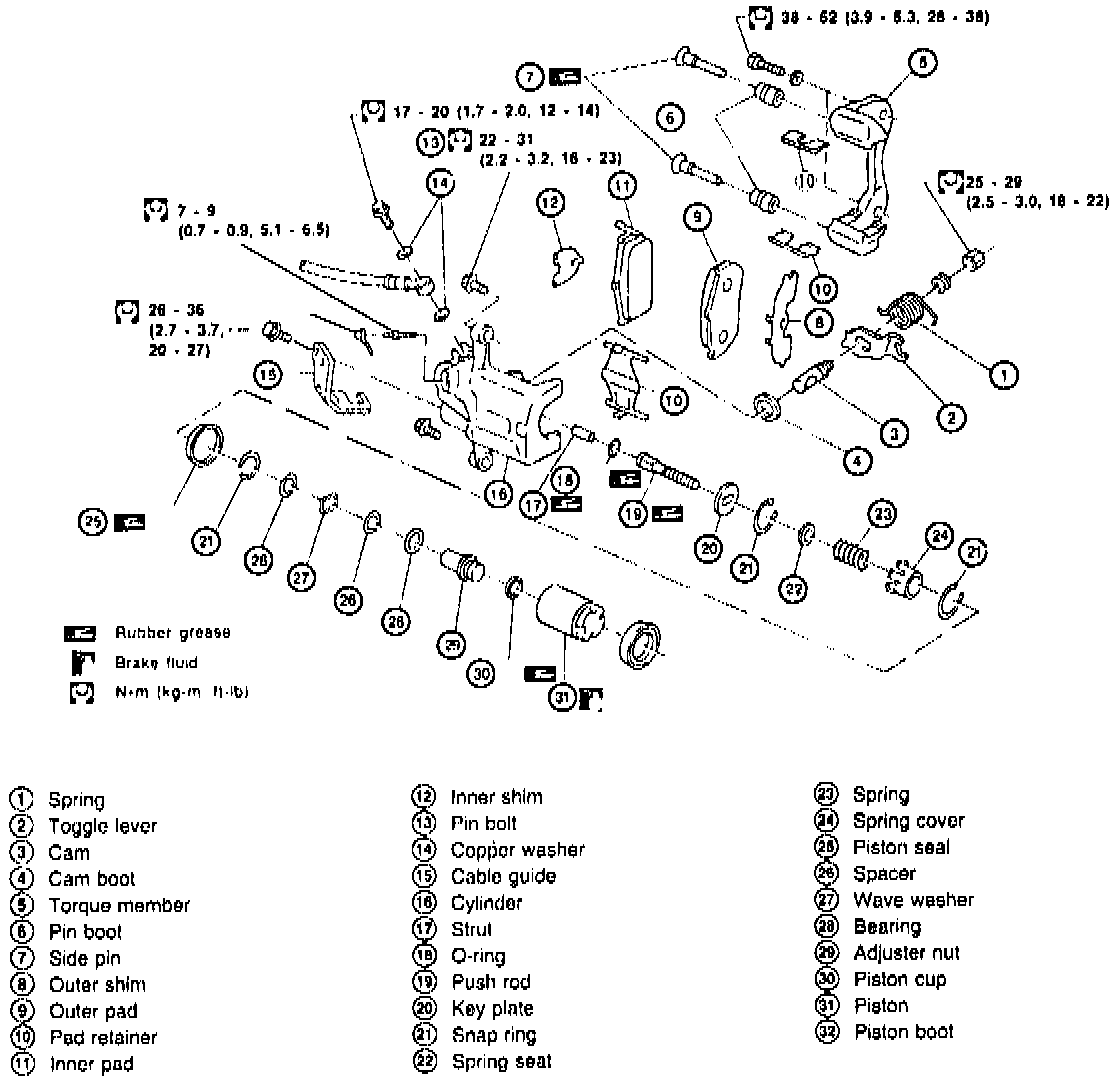 BRAKE PAD SERVICEFig. 16 Exploded View Of CL9HA Rear Disc Brake Assembly:
