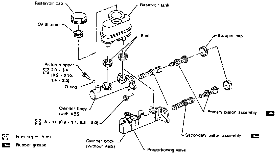 Refer to Fig. , for master cylinder overhaul procedures, noting the following: