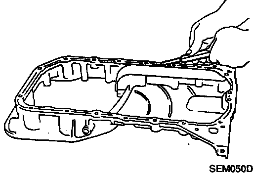 a. Apply a continuous bead of liquid gasket to mating surface of steel oil pan.