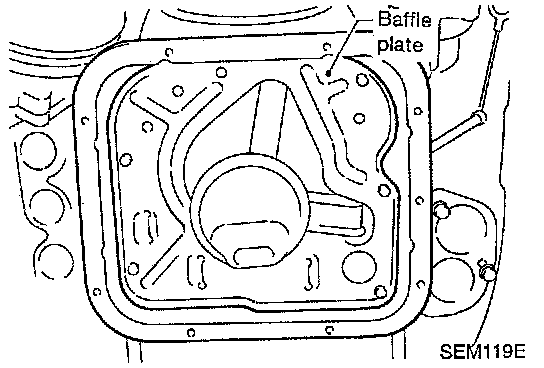 3. Refer to the illustration and remove the steel oil pan bolts.