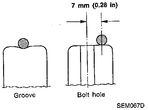 d. Be sure liquid gasket diameter is 3.5 to 4.5 mm (0.138 to 0.177 inch).