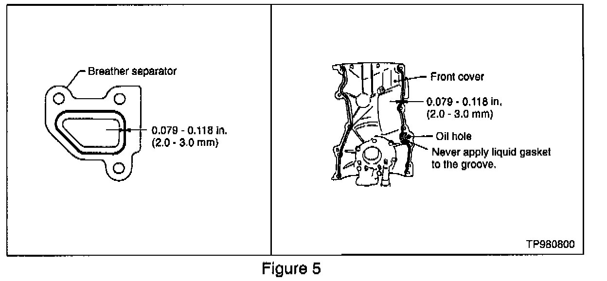 . Apply a continuous bead of RTV sealant to the breather separator (pre-98' models) and to the front cover (see Figure 5).