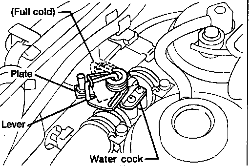 6. Check that air mix door operates properly when temperature control lever is slid to full hot and full cold.