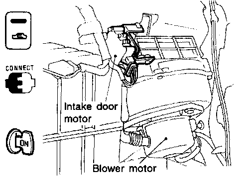 7. Check that intake door operates properly when REC switch is turned ON and OFF.