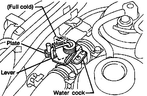10. Attach water cock cable to plate and secure with clip (white mark on cable housing should be centered under the retaining clip).
