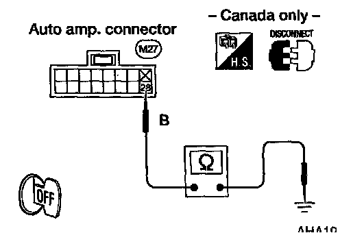 Check body ground circuit for auto amp. with ignition switch OFF.