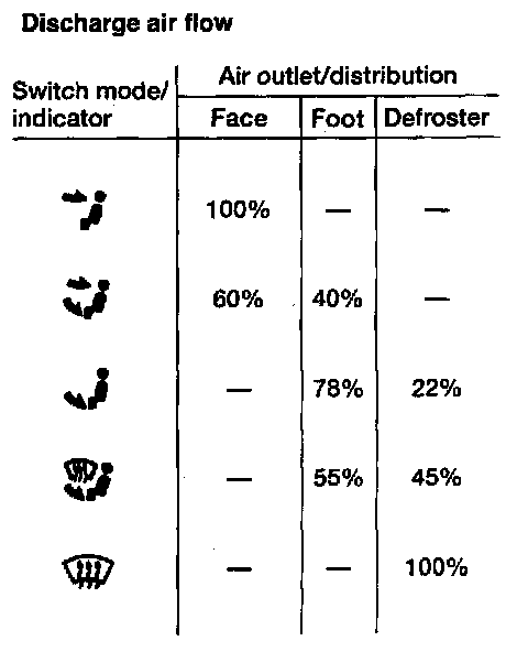 2) Confirm that discharge air comes out according to the air distribution table at left.