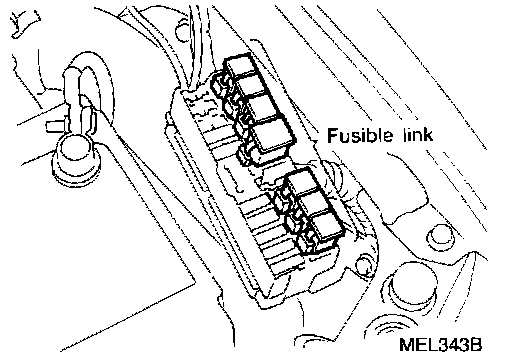 A melted fusible link can be detected either by visual inspection or by feeling with finger tip. If its condition is questionable, use circuit tester or test lamp.