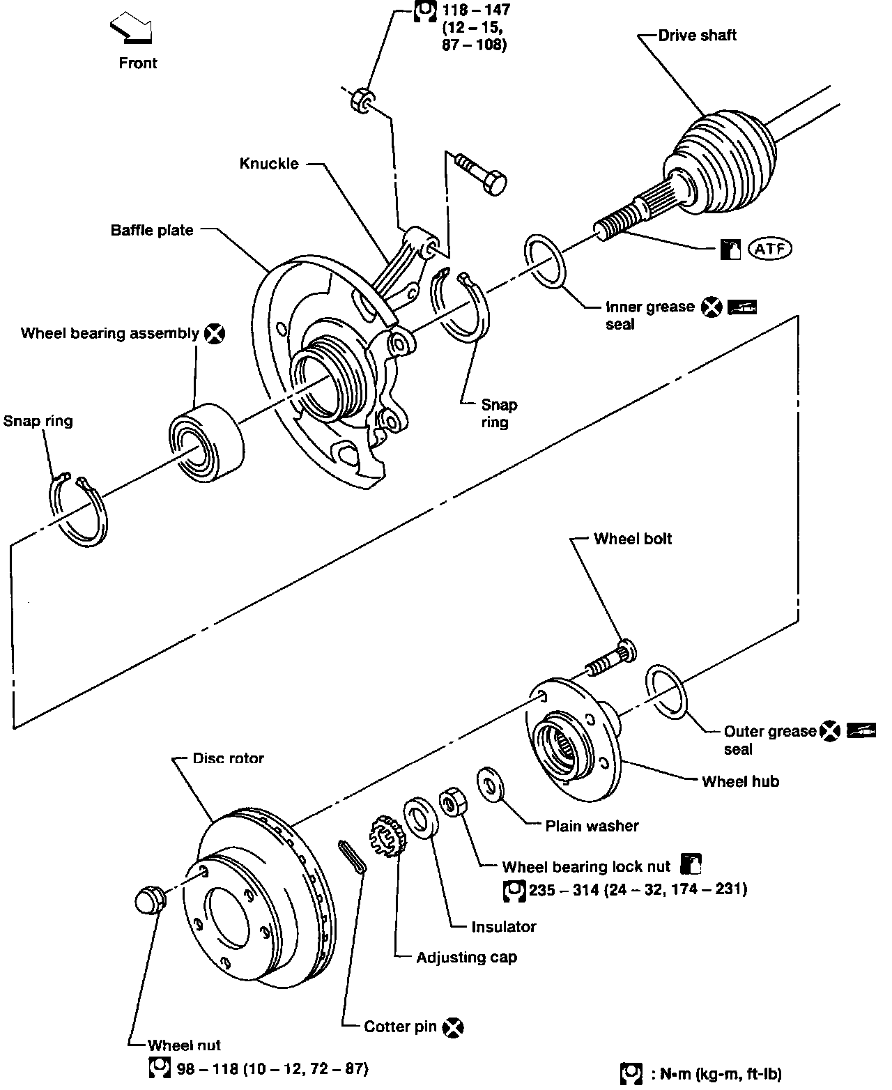 Torque: 118 - 147 Nm (12 - 15 kg.m, 87 - 108 ft.lb)