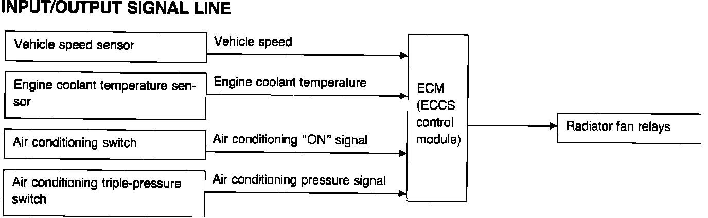 The Engine Control Module (ECM) controls the radiator fan corresponding to the following conditions.