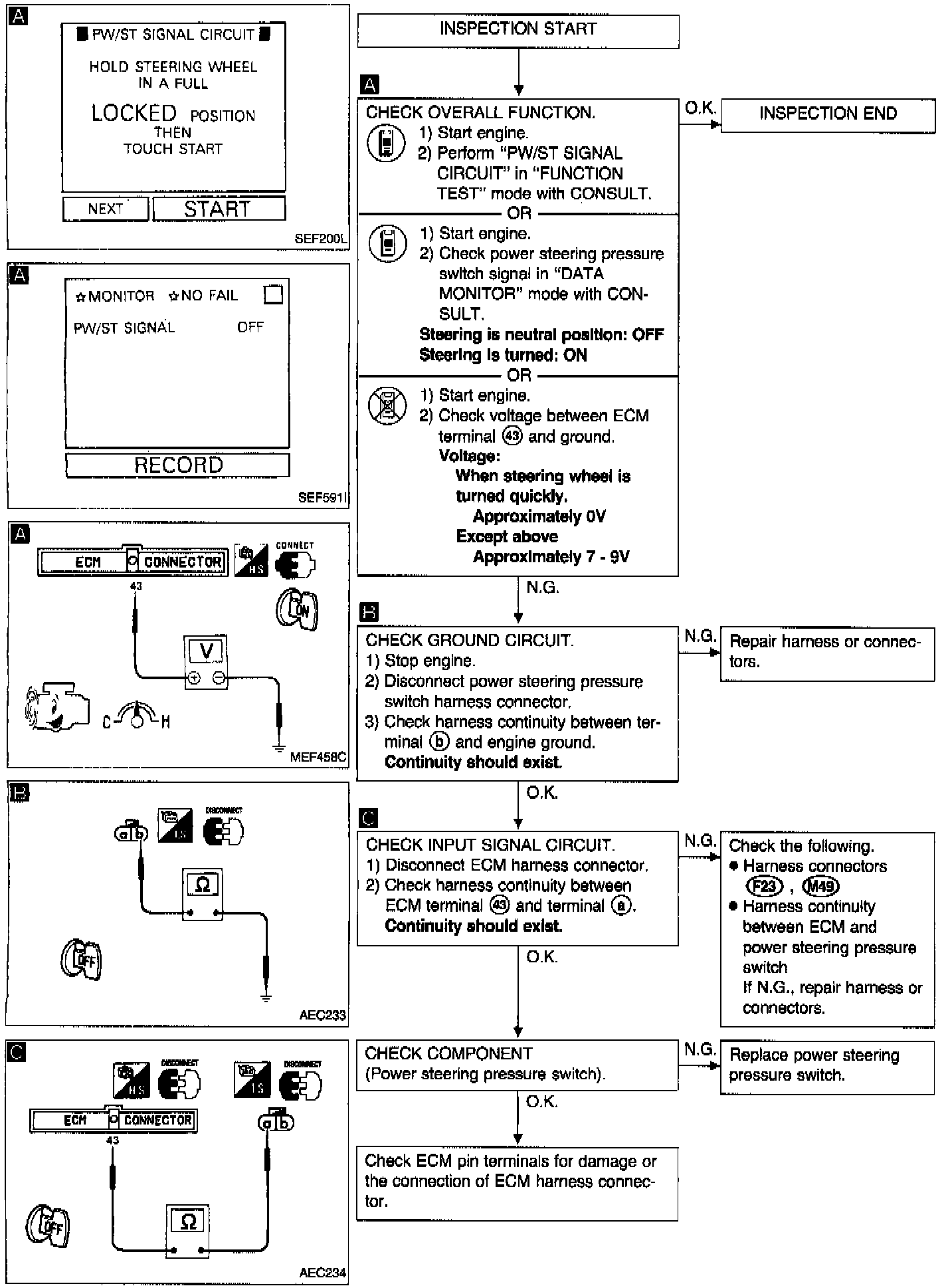 Power Steering Switch Circuit Diagnostic Chart: