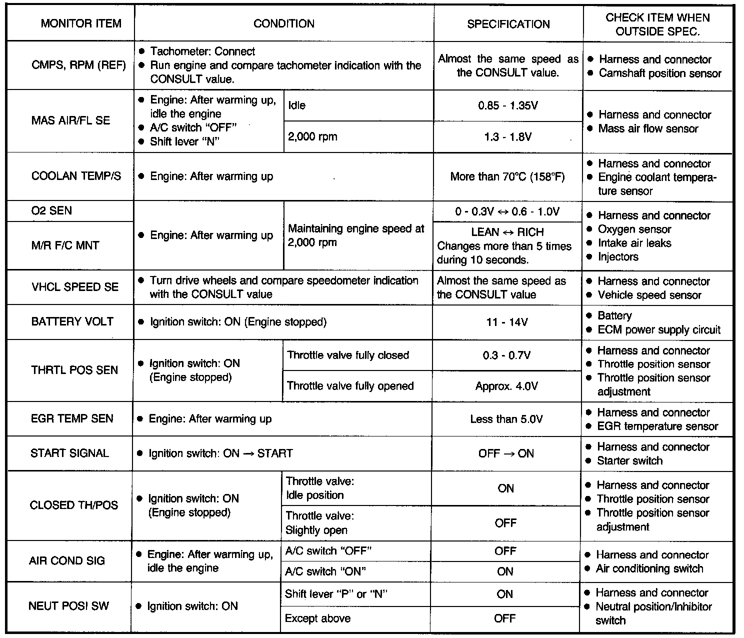 ^ Specification data are output/input values which are detected or supplied by ECM at the connector.