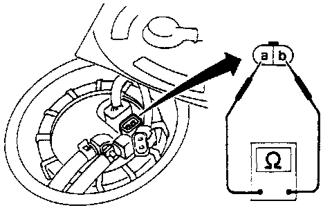4. Using an ohm meter, check the resistance between the terminals as shown.