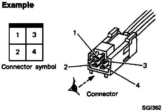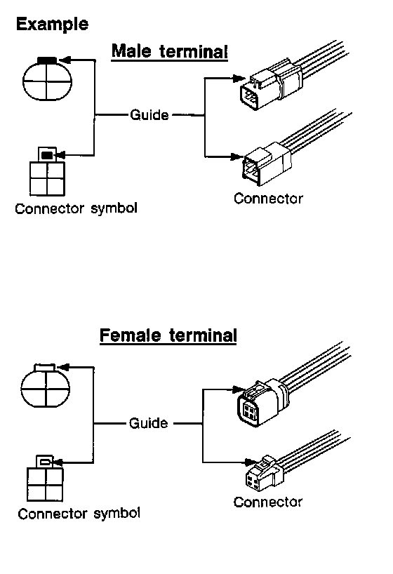 All connector symbols in wiring diagrams are shown from the terminal side.