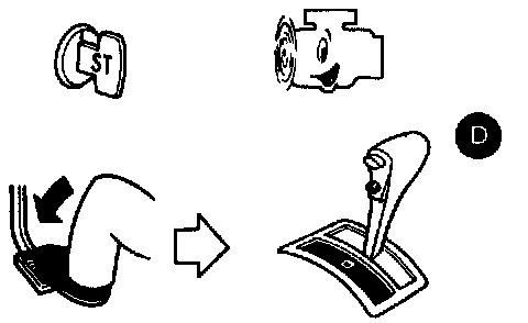 5. Start engine, apply foot brake, and place selector lever in "D" position.