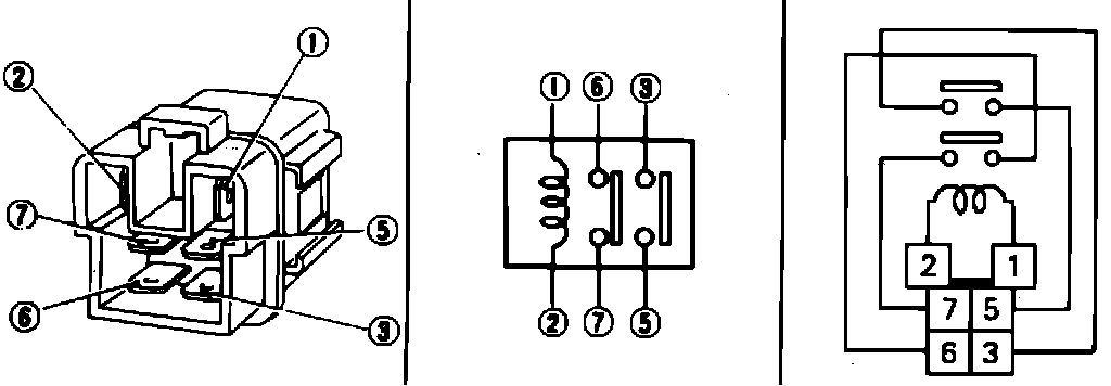 1. Apply voltage to the terminals 1 and 2 and check for continuity between terminals 6 and 7.