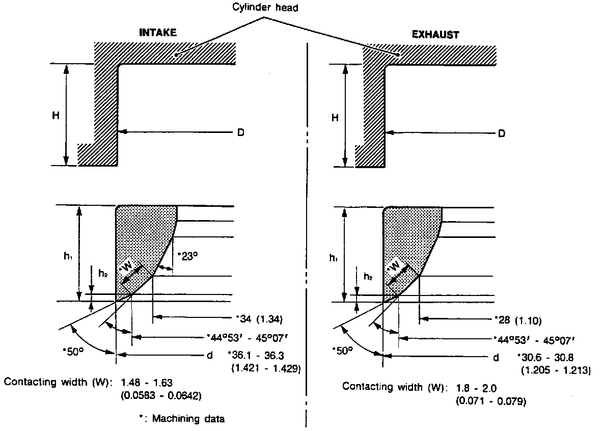 Intake and Exhaust 0.064 - 0.096 mm (0.0025 - 0.0038 inch)