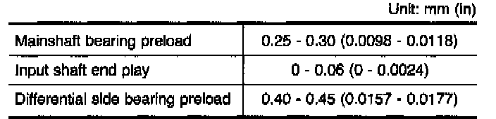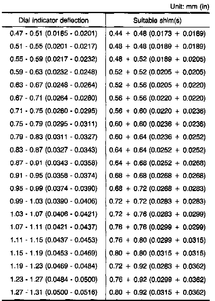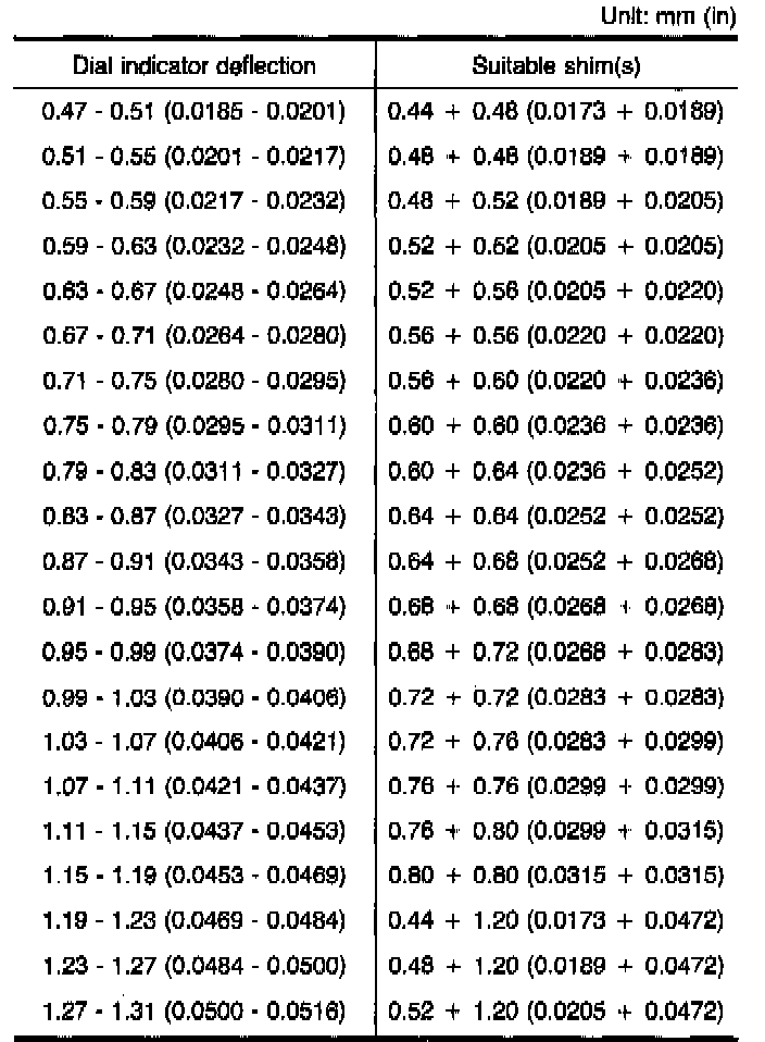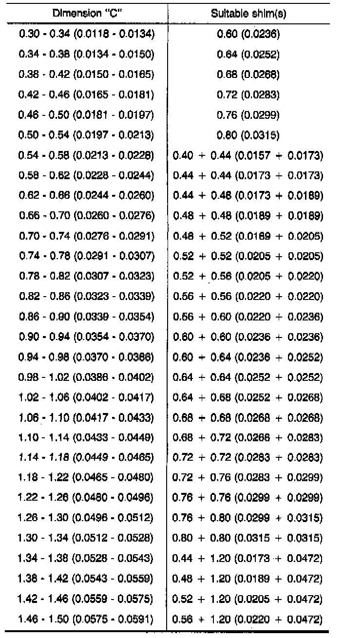 Table For Selecting Input Shaft Bearing Adjusting Shim: