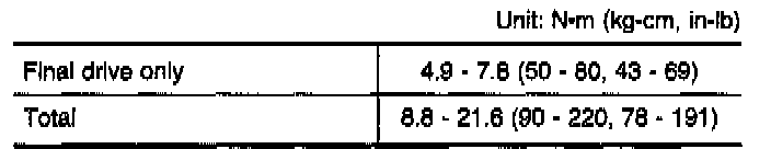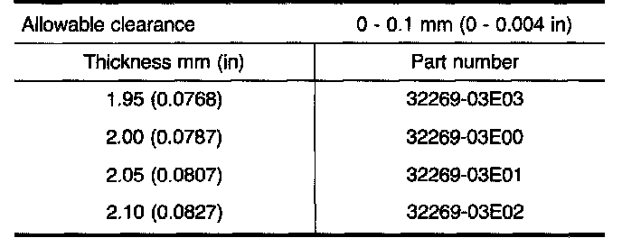 Table For Selecting Differential Side Bearing Adjusting Shims - RS5F50V: