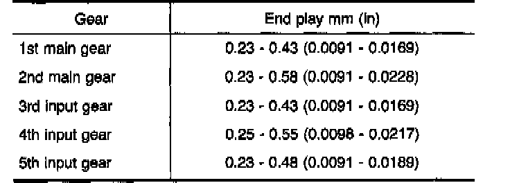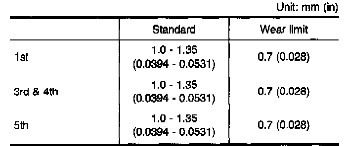 Clearance Between Baulk Ring And Gear 1st, 3rd, 4th, 5th: