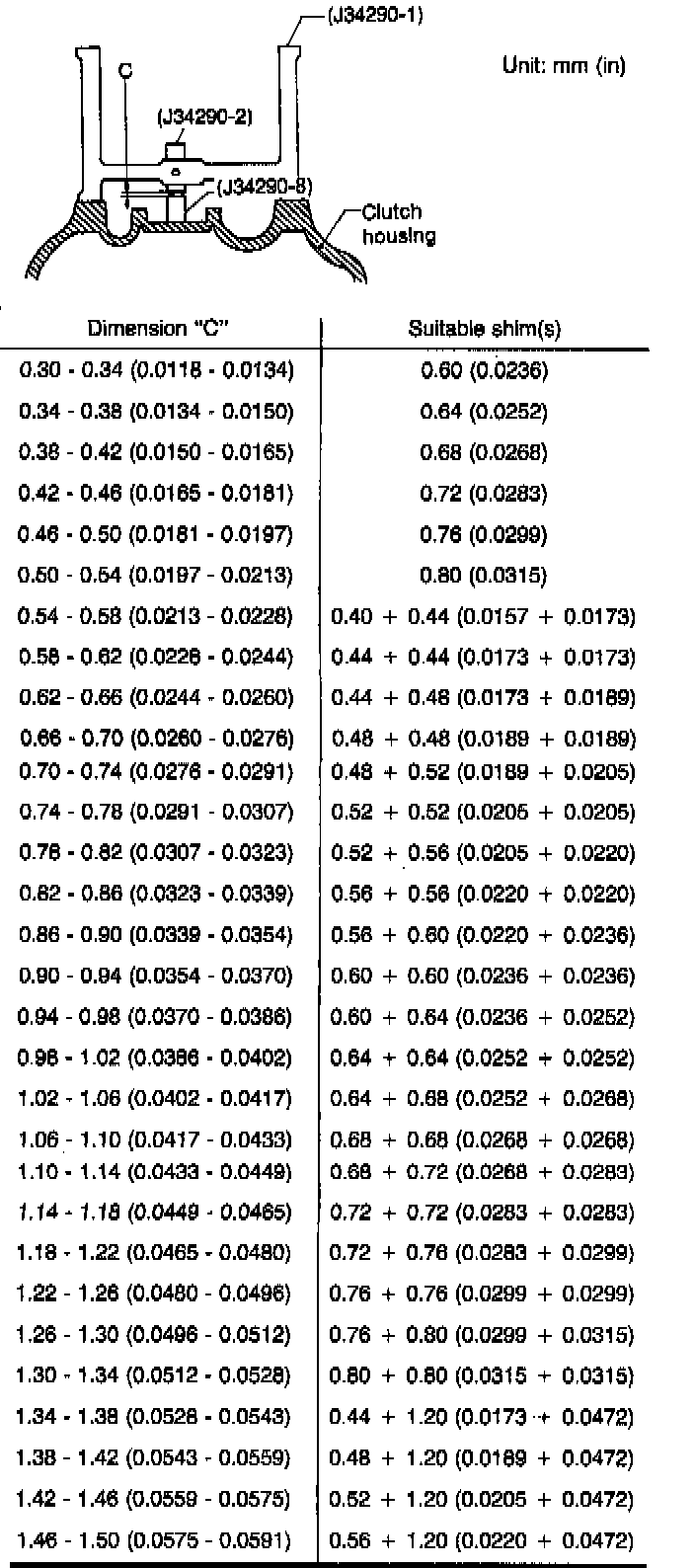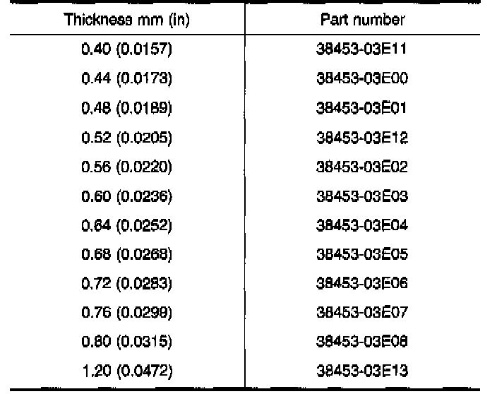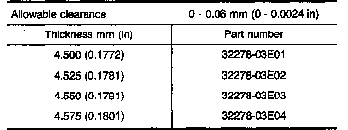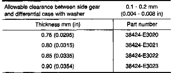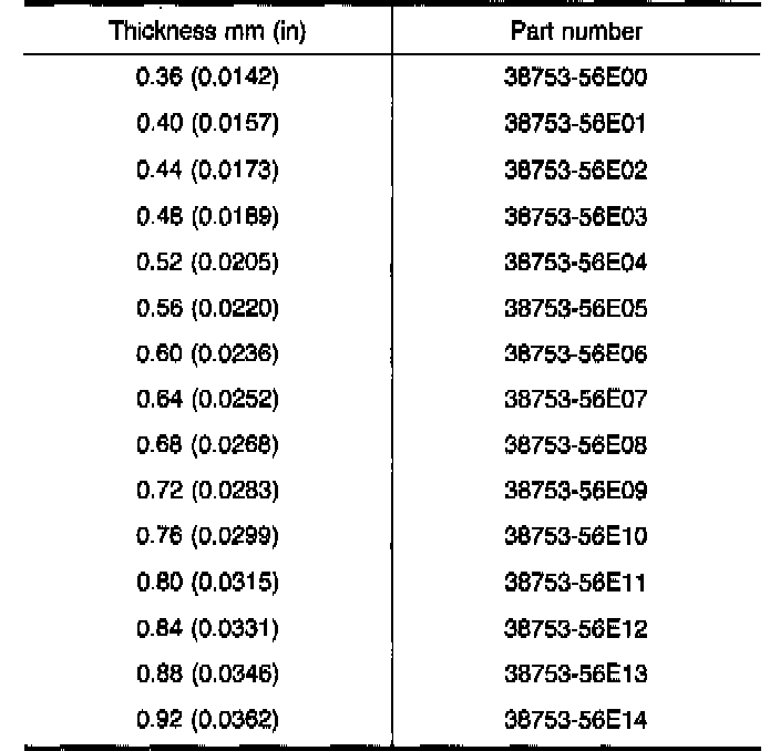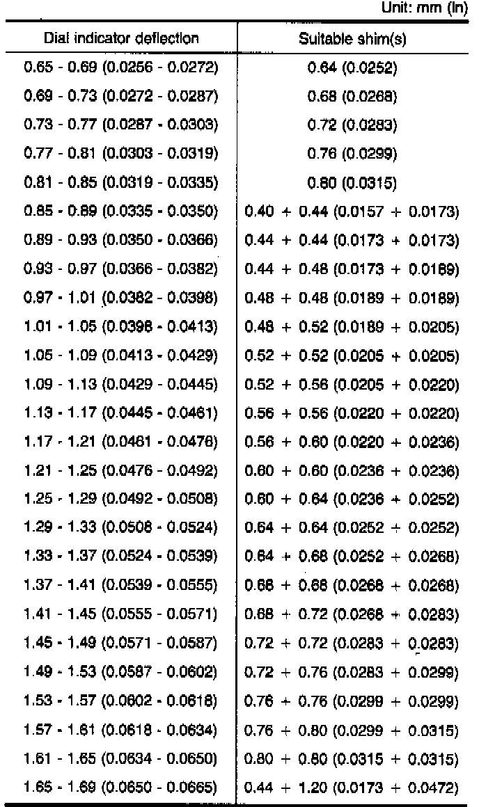 Table For Selecting Differential Side Bearing Adjusting Shims - RS5F50A: