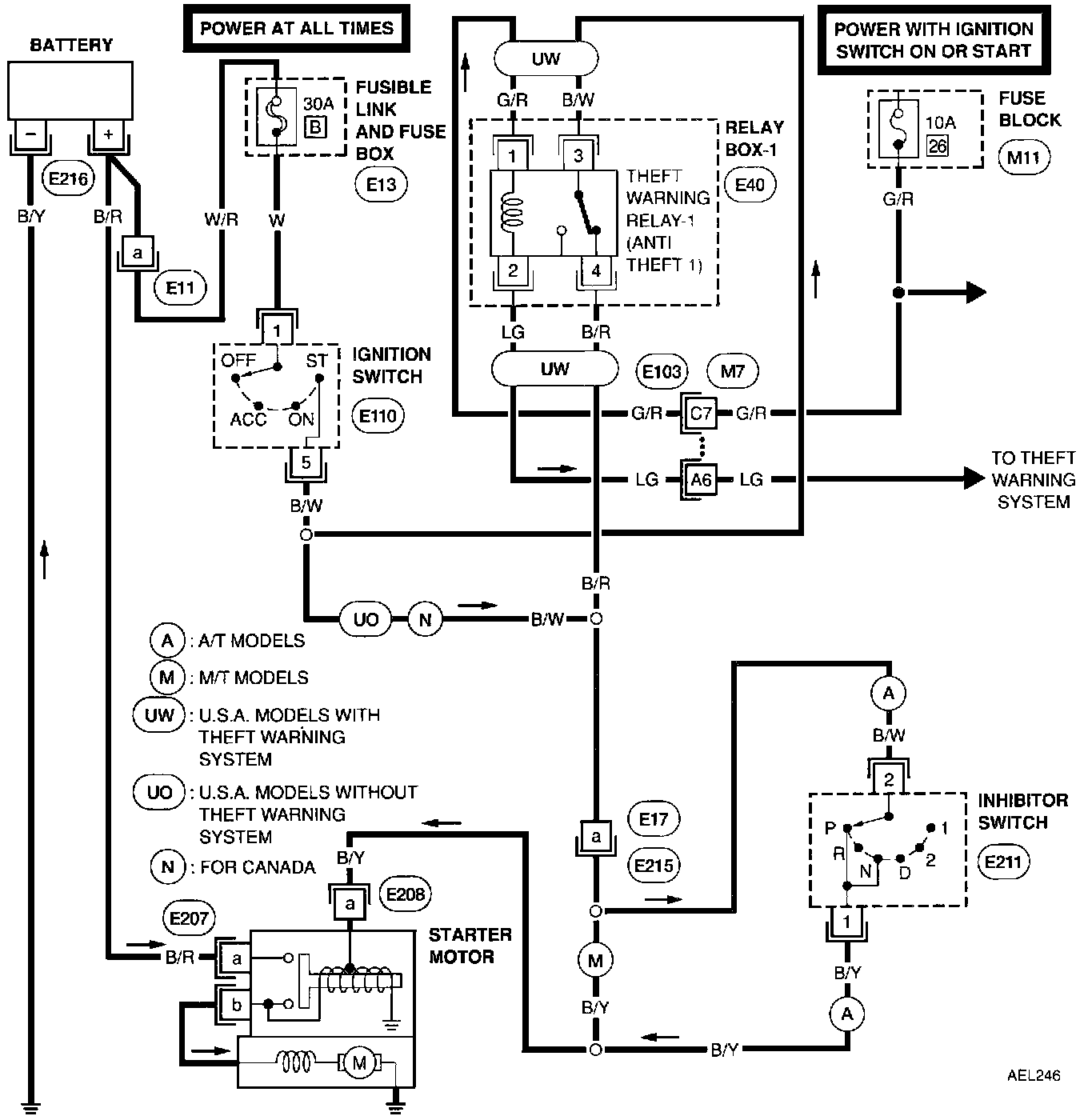 Starting System Wiring Diagram: A/T Models And Canada M/T Models: