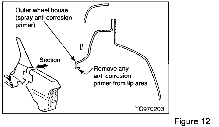 ^ Sufficient lip surface (for bonding) on the outer wheel house must be present (see Figure 12 - wheel house lip area).