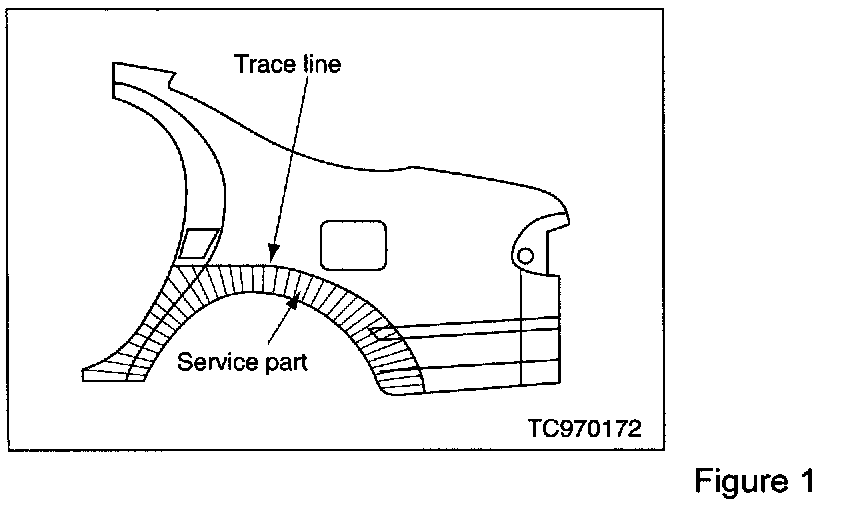 2. Position the service part on the quarter panel and trace the service part profile on to the quarter panel (see Figure 1).