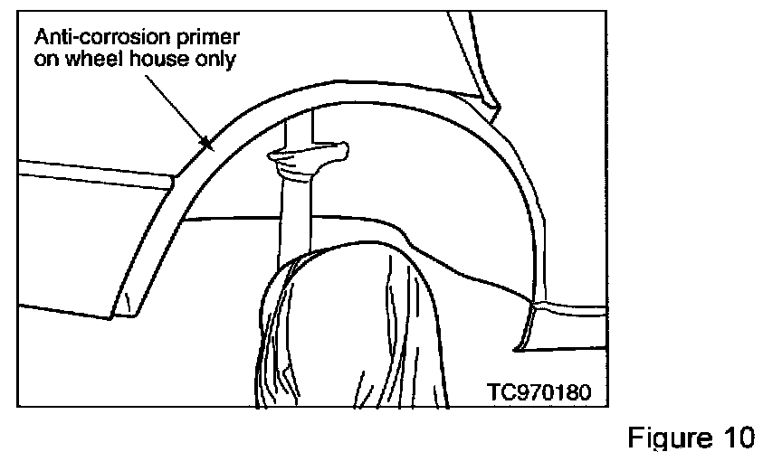 4. Spray anti-corrosion primer (DuPont 215S) on to the cleaned surface the outer wheel house. (see Figure 10).