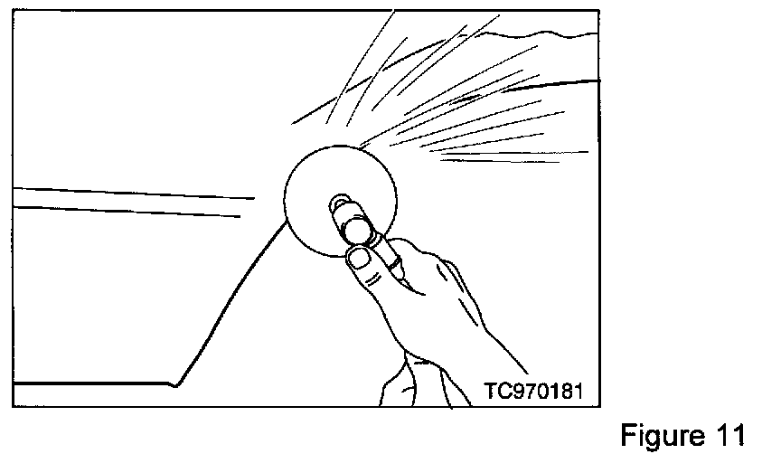 6. Grind all surfaces to be bonded on the remaining quarter panel (see Figure 11). Grind the surface on the exposed wheel house lip to remove any over-spray of anti-corrosion primer in this area (see Figure 12).