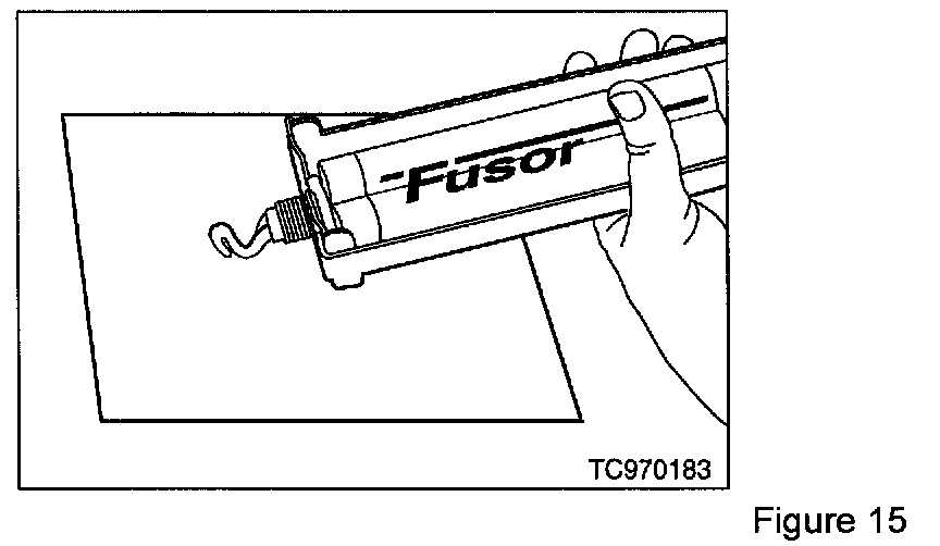 12. Dispense Fusor metal bonding adhesive (Lord stock # 108) until both components flow from the tip of the cartridge to insure proper ratio (see Figure 15).