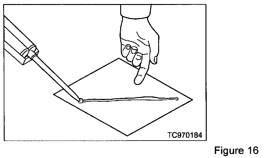 14. Connect mixing tip to metal bonder tube and run out a 6" (minimum) mixing tips length for proper mixture (see Figure 16). For further details, see Lord Corporation Fusor metal bonding adhesive instructions.