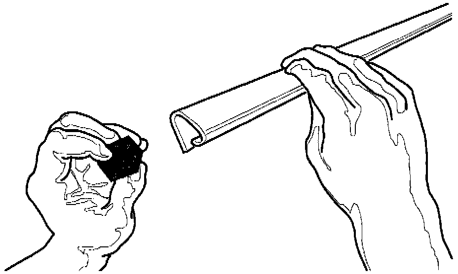 Remove the molding and locate the small piece of foam (~2Ox14x3 mm) near the front edge of the molding. Carefully move the foam piece so that it is at the top forward edge of the molding (if foam cannot be removed, obtain a similar foam piece and attach to the front edge of the molding.