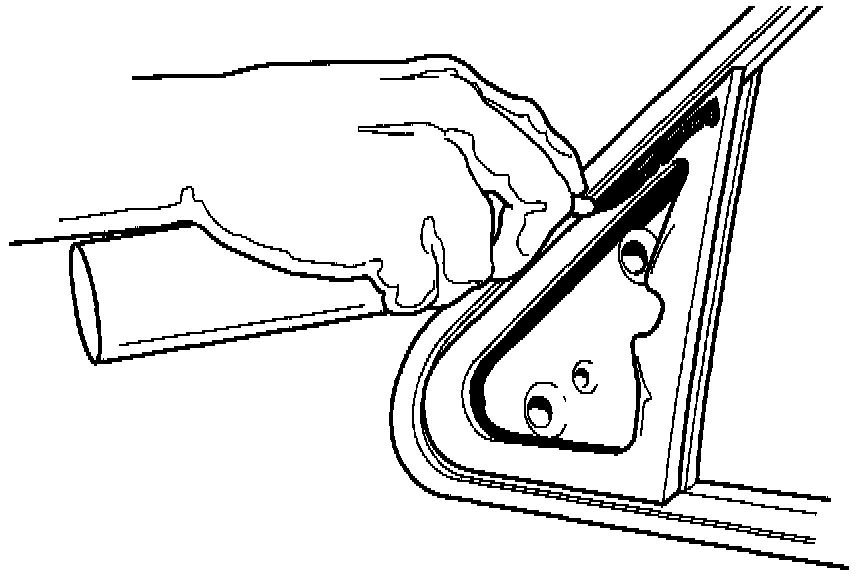 2. Use the following information along with the illustrations to determine possible areas for improvements in order to reduce the level of wind noise. The procedure applies to both the right or left sides of the vehicle.